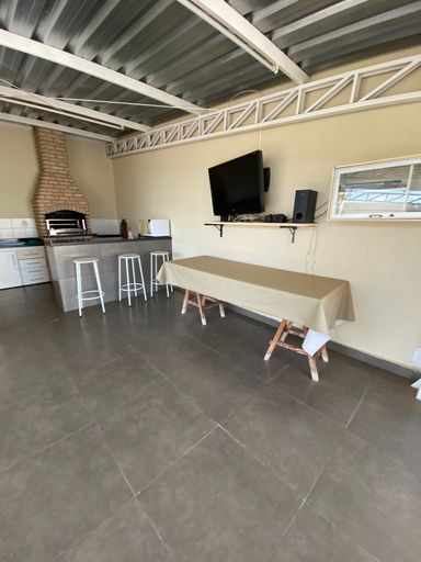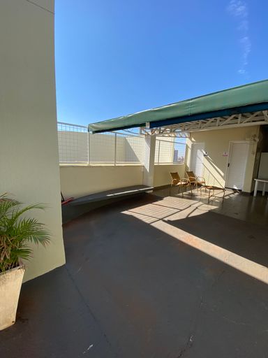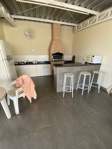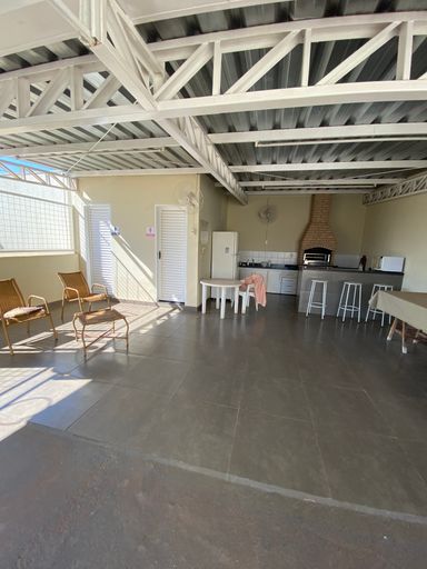 🍾 área para festas na cobertura com com churrasqueira, fogão, geladeira, micro-ondas, mesas e cadeiras