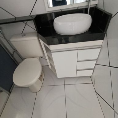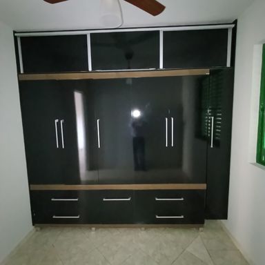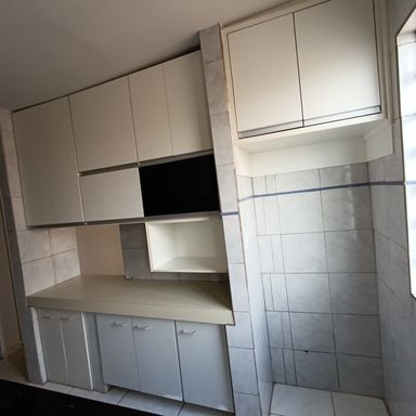 2 dormitórios c/AE, sala de visitas, banheiro social, cozinha c/AE, fogão e forno, área serviços, garagem coberta p/ 1 veículo, garagem descoberta p/1 veículo, piso cerâmica – PILOTIS.