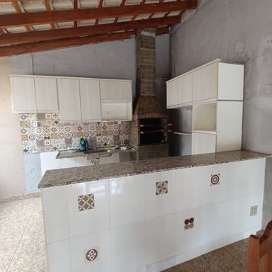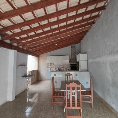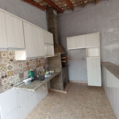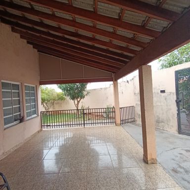 2 DORMITÓRIOS C/ ARMÁRIOS, SALA DE VISITAS, SALA DE TV, 2 BANHEIROS, COPA, COZINHA, ÁREA DE SERVIÇOS, QUINTAL, GARAGEM COBERTA P/ 3 VEÍCULOS, ÁREA COBERTA NA FRENTE E NOS FUNDOS.