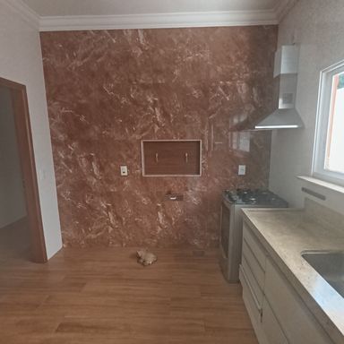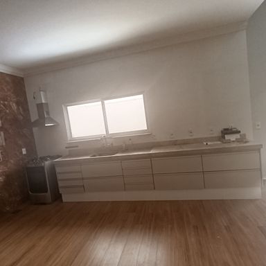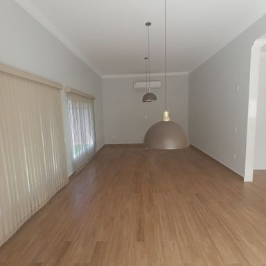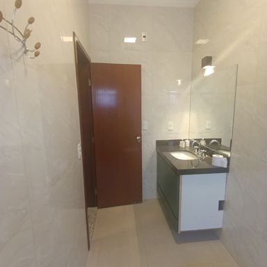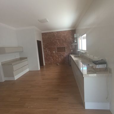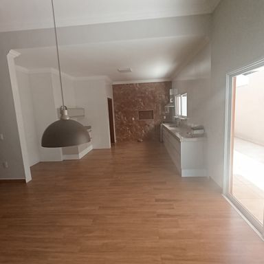 2 dormitórios c/banheiros privativos, 1 dormitório c/ closet, 1 dormitório c/AE, sala de visitas 2 ambientes, lavabo, cozinha c/armário sob a pia e churrasqueira c/coifa, área serviços, quintal, garagem coberta p/ 4 veículos, garagem descoberta p/ vários veículos, teto laje, piso porcelanato, cerâmica e laminado de madeira.