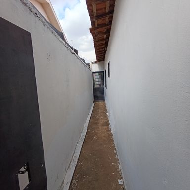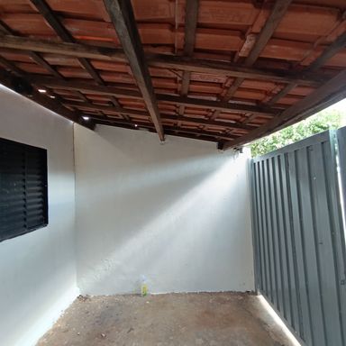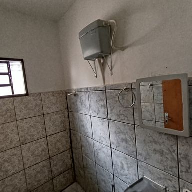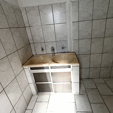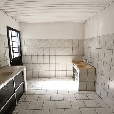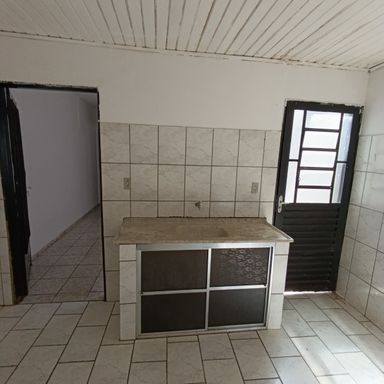 1 dormitório, sala de visitas, banheiro social, cozinha, área serviços, quintal, garagem coberta p/ 1 veículo, teto laje e forro de madeira, piso cerâmica e cimento.