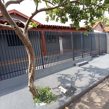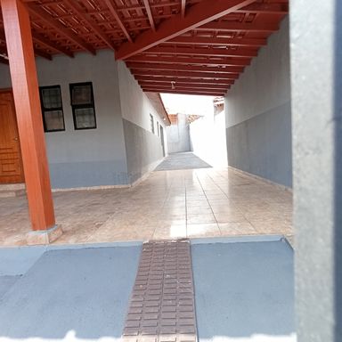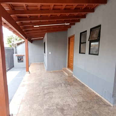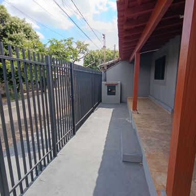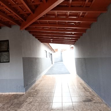 2 dormitórios, sala de visitas, banheiro social, copa e cozinha, área de serviços, despejo, quintal, garagem coberta p/ 1 veículo, garagem descoberta p/ 1 veículo, teto forro de madeira, piso cerâmica e cimento.