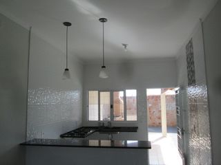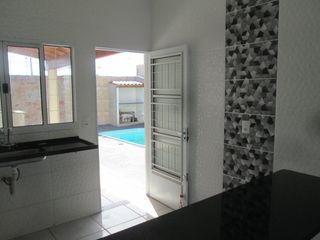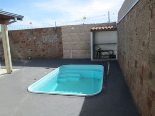 2 dormitórios, sala de visitas, banheiro social, cozinha, área serviços, varanda coberta c/ churrasqueira, quintal c/piscina de fibra c/motor., garagem descoberta p/ 2 veículos, teto laje, piso cerâmica, cerca elétrica concertina e alarme.