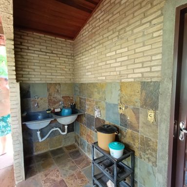 ESPAÇO PARA LAZER: PISCINA EM FIBRA - QUIOSQUE - CHURRASQUEIRA COM COZINHA
