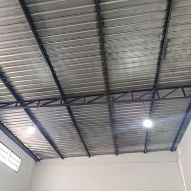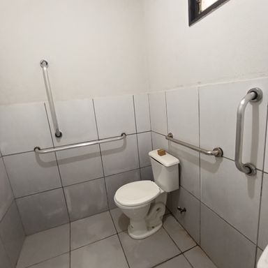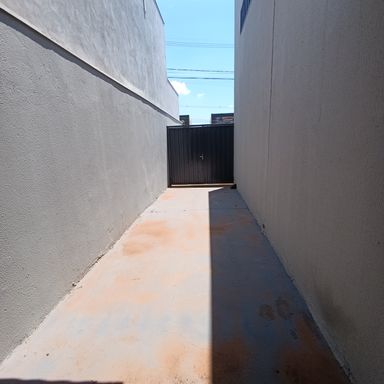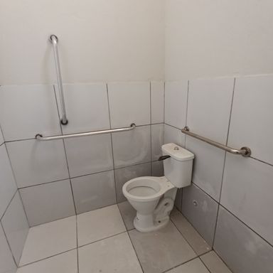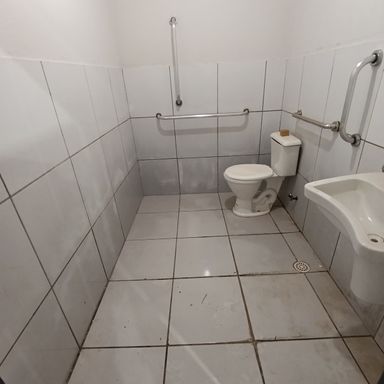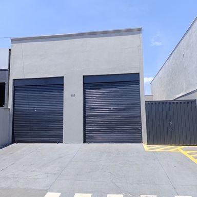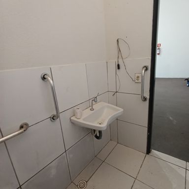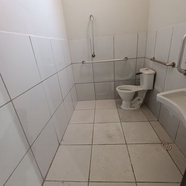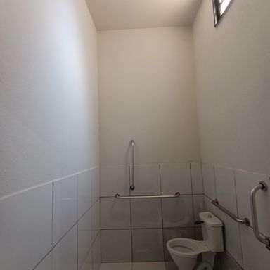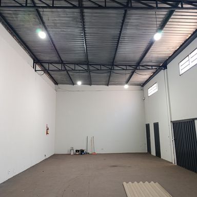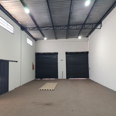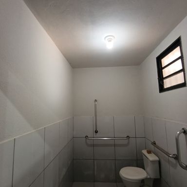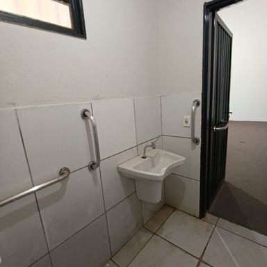 Salão comercial c/ área construída 120,00 m², piso cimento, teto em estrutura metálica e cobertura em telhas galvanizadas, 2 portas frontais metálicas de enrolar, corredor lateral c/ porta e portão em estrutura metálica, 2 banheiros internos c/ acessibilidade piso cerâmica, estacionamento frontal p/ 2 veículos.