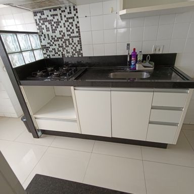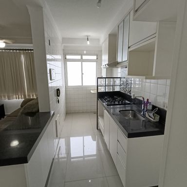 2 dormitórios c/AE, sala de visitas 2 ambientes, banheiro social, cozinha c/AE, área serviços c/AE, garagem coberta p/ 1 veículo, piso porcelanato, área de lazer no condomínio, portaria 24 horas – ELEVADOR - MOBILIADO,