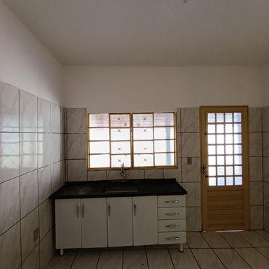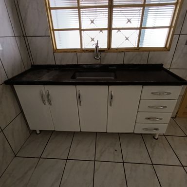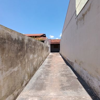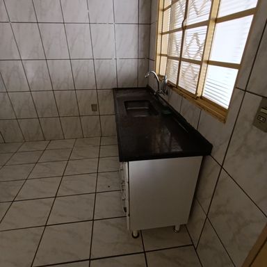 1 dormitório, sala de visitas, banheiro social, cozinha, área de serviços, quintal, garagem coberta p/ vários veículos, teto laje, piso cerâmica.
