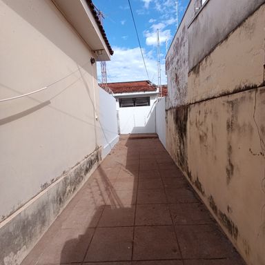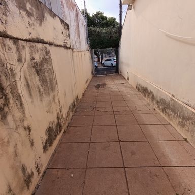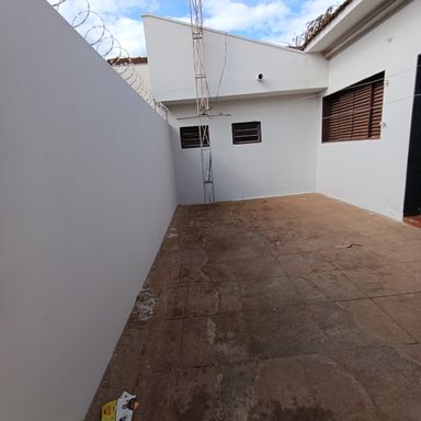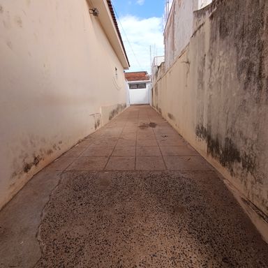 1 dormitório c/hall em anexo e banheiro privativo, sala de visitas, copa, cozinha e área de serviços conjugados, quintal, garagem descoberta p/ vários veículos, teto laje, piso tacos de madeira, cerâmica e cimento.